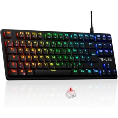 The G Lab Keyz Platinum TKL Red Switch Outemu Low Profile AZERTY Mechanical Keyboard Ultra Slim, RGB & 100% Customizable Keys, Total Anti ghosting PC/PS4/PS5/Xbox New