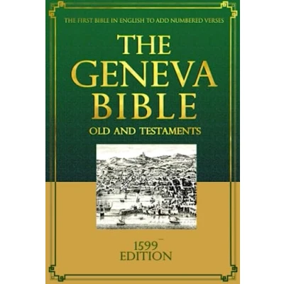 the Geneva Bible 1599 In Old English beginning God created heauen and earth: Ancient Testament & New authorized of Church England.
