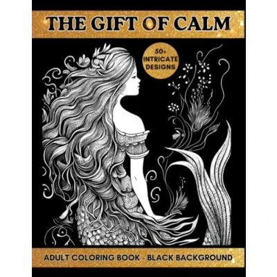 The Gift of Calm Adult Coloring Book: Black Background Pages Stress Relieving Flowers, Landscapes, Patterns, Fantasy, Christmas, Nature ... 50+ Intricate Designs (Adult Books)