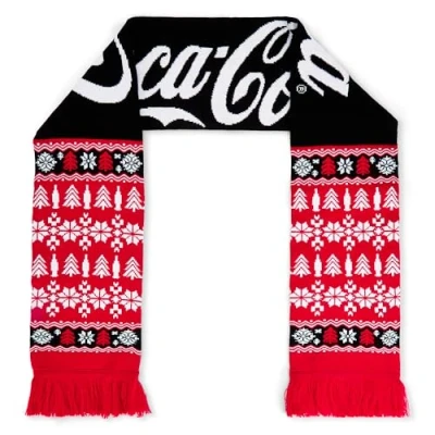 The Gift Scholars Officially Licensed Coca Cola Red Black Scarf Unisex Christmas Knit with Snowflake and Coke Logo Design for Men, Women, Kids, 150cm Long