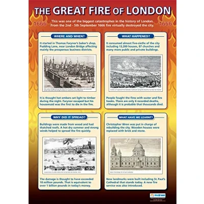 The Great Fire of London History Posters Gloss Paper measuring 850mm x 594mm (A1) Classroom Education Charts by Daydream