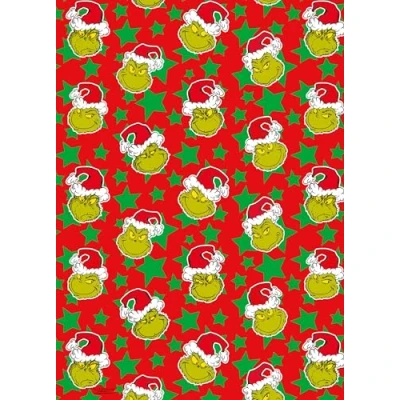 DESIGN: Festive Grinch-themed wrapping paper featuring the iconic character wearing Santa hats on a vibrant red background with green stars pattern LENGTH: 4 metres of premium gift wrap paper, perfect for wrapping multiple Christmas presents and holiday gifts QUALITY: Durable paper material that folds cleanly and cuts smoothly for a professional gift-wrapping experience VERSATILITY: Suitable for presents of various sizes, ideal for Christmas gifts, holiday celebrations, and winter festivities DIMENSIONS: Standard gift wrap width allows for convenient wrapping of most common gift sizes