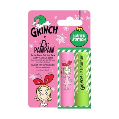 Lip Care Duo: A Limited Edition Lip Care Duo featuring a Candy Cane Lip Scrub and a Peach Pink Tinted Balm in 4g sizes, designed to exfoliate, hydrate and care for lips with a simple two step routine. Gentle Exfoliation: The Candy Cane lip scrub helps buff away dry, flaky skin, leaving lips feeling smoother and more refined while adding a festive touch to your regular lip care routine. Hydrating Care: The Peach Pink Pawpaw balm helps moisturise and nourish lips after exfoliation, delivering a soft wash of colour while supporting comfort and smoothness throughout the day. Easy Routine: Use the lip scrub to gently exfoliate as needed, then apply the Peach Pink balm to hydrate and add subtle tint, ideal for daily use or when lips feel dry and dull. Vegan Formula: Made with vegan ingredients and cruelty free, this festive lip care set is suitable for all skin types and makes a fun, giftable option for The Grinch fans and lip care lovers.