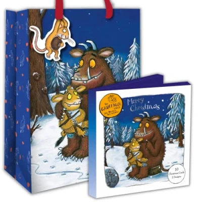 The Gruffalo Danilo Promotions Ltd Christmas Boxed Cards, Pack 10 with 2 Designs and Medium Gift Bag for Christmas, Bundle, Blue & White, GRUFFALO3