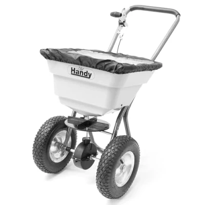 LARGE, LIGHTWEIGHT HOPPER - sizeable 36kg hopper and lightweight build for quick and easy spreading in any application, suitable for Refined Ice Salts, not Rock Salt FAST, EFFICIENT GARDEN SPREADING – Maximum 3.66m spreading width and a strong steel frame PNEUMATIC TYRES FOR EASY PUSHING- smoothly ride over all types of terrain leaving no narrow track marks on a manicured lawn EASY TO USE FEED REGULATOR - adjust how much you spread, just move the simple one-handed lever- no tools needed AUTHENTIC BRITISH BRAND SINCE 1938 – well-engineered, robust and reliable products that make gardening easy, with a helpful team based in the UK COMES WITH MESS FILTER AND RAIN COVER – to help stop blockages when spreading in any weather, Manufacturer: Handy