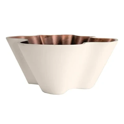 MODERN DESIGN - Decorative two-toned shallow planter with painted exterior and a metallic looking interior. This plant pot also features a dynamic wavy rim that elevates any space it's placed in. WATER DRAINAGE - The plant pot comes equipped with a removable drain plug for optimal plant care. VERSATILE SIZE - This planter's size is perfect for single or multiple plantings of flowers, vegetables, herbs or other decorative plants. COORDINATES - Coordinates with our complete line of succulent planters (sold separately). DIMENSIONS - The plant pot dimensions are 10.06" D x 9.46" W x 4.04" H