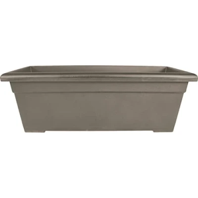 LARGE SIZE - These planters are 28" long and 9.75" high, so they are perfect for landscaping, patios, and pool-side settings. The traditional design and natural colors enhance formal and informal plantings outdoors. The classic look of the flower boxes allows them to fit into any setting. DURABLE & LIGHTWEIGHT - Made from plastic, these containers are very durable and lightweight. This makes them great for performing outdoor container gardening on your patio, porch, deck, or balcony. DRAINAGE AND CIRCULATION - These planter pots have raised feet for drainage and air circulation. They also feature removable drain plugs, so you can easily transfer your outdoor plants indoors or control the water drainage of the planter. PERFECT FOR ORNAMENTALS - These flower containers are perfect for displaying ornamental and decorative plants and flowers. The simple design of the box helps to keep the attention on your plants making your deck feel more unified and elevated. DIMENSIONS - This large rectangular planter is 11.25" D x 27.75" L x 9.75" H.