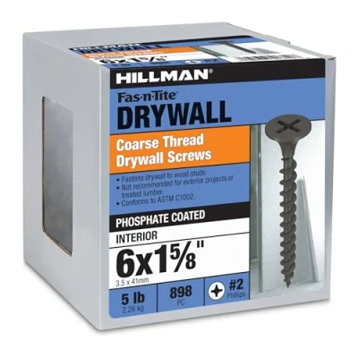 The Hillman Group 47126 6 X 1 5/8 Inch Coarse Thread Phillips Drive Drywall Screw, 5 Pound,Black Phosphate