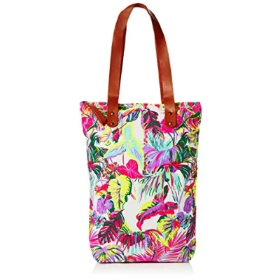 The Holiday Shop London Womens Canvas Beach Bag Tropical and Tote Multicolour (White/Pink/Yellow)