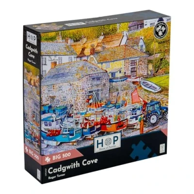 The House of Puzzles Cadgwith Cove Jigsaw Big 500 Piece Jigsaws For Adults, Extra Large Pieces, Artist Illustrated, Scenic Landscape, Deluxe Puzzle Gifts