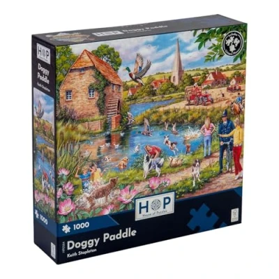 The House of Puzzles Doggy Paddle Jigsaw 1000 Piece Jigsaws For Adults, Artist Illustrated, Scenic Landscape, Deluxe Puzzle Gifts