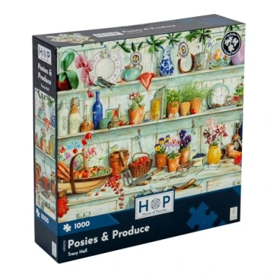 The House of Puzzles Posies & Produce Jigsaw 1000 Piece Jigsaws For Adults, Artist Illustrated, Scenic Landscape, Deluxe Puzzle Gifts