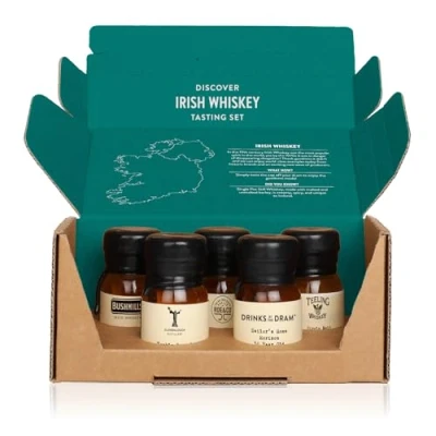 DISCOVER NEW FAVOURITES: Drinks by the Dram brings you unique tasting sets that allow you to explore miniature drams of premium spirits so that you can find new favourites without buying a full bottle. IRISH DELIGHTS: Ahh, the glorious Emerald Isle. The home of many a renowned distillery that to this day is churning out impeccable whiskey. We’ve packed in some of the very best that Ireland has to offer into this set for you to explore. SET CONTENTS: The Irish Whiskey discovery set includes five 3cl drams of Teeling Single Malt, Bushmills 10 Year Old, Roe & Co Irish Whiskey, Glendalough Double Barrel Irish Whiskey and Sailor's Home The Horizon 10 Year Old. ECO-FRIENDLY PACKAGING: Your discovery set arrives in a plain, transit-ready box (with all artwork and information inside) to reduce waste and keep shipping sustainable - simple on the outside, impressive on the inside. EXPLORE THE RANGE: Whether you’re a whisky connoisseur or are partial to spiced rums, we’ve got a set for everyone. There’s a tasting set to suit all tastes and different budgets so that you can experience more of what you love.