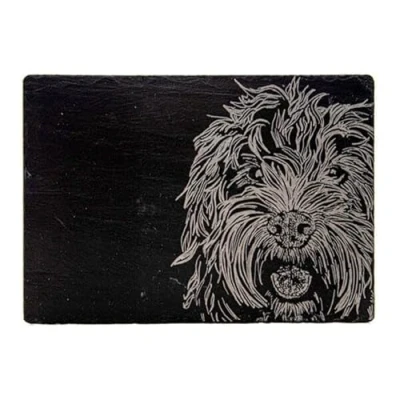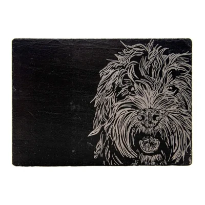Durable and versatile, this Just Slate Company Cockapoo Slate Cheese Board is just the thing for presenting and serving your favourite cheeses.The delightful slate cheese board has been handcrafted in Scotland and is engraved with a gentle loving cockapoo. A foam backing protects surfaces.This rectangular slate cheese board would make an ideal present, especially as a housewarming or wedding gift, and is a must for those with an appreciation for cocker spaniels.Slate cheese board dimensions: 35cm x 25cm. Wipe clean.Combine the Just Slate Company Cockapoo Slate Cheese Board with slate place mats and coasters for a coordinated look.