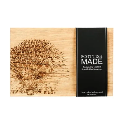 Equally striking as it is practical, the Just Slate Company Hedgehog 30cm Oak Serving Board is a fun and contemporary way to slice and serve cheese and biscuits to guests after dinner. Also perfect for use as a chopping board.An eye catching, hand illustrated cute hedgehog is engraved on this serving board which would make a delightful gift, either as a wedding or housewarming present.The oak that's used to make this wonderful serving board is sustainably grown and handcrafted in Scotland.Oak serving board dimensions: L30cm x W20cm x H2cm. To clean, simply wipe down with a damp cloth and dry immediately.The Just Slate Company Hedgehog 30cm Oak Serving Board can be teamed with a range of matching items in the Just Slate Company collection for a coordinated look.