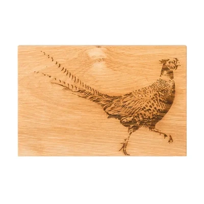 Equally striking as it is practical, the Just Slate Company Pheasant 30cm Oak Serving Board is a fun and contemporary way to slice and serve cheese and biscuits to guests after dinner. Also perfect for use as a chopping board.An eye catching, hand illustrated pheasant is engraved on this serving board which would make a delightful gift, either as a wedding or housewarming present.The oak that's used to make this wonderful serving board is sustainably grown and handcrafted in Scotland.Oak serving board dimensions: L30cm x W20cm x H2cm. To clean, simply wipe down with a damp cloth and dry immediately.The Just Slate Company Pheasant 30cm Oak Serving Board can be teamed with a range of matching items in the Just Slate Company collection for a coordinated look.