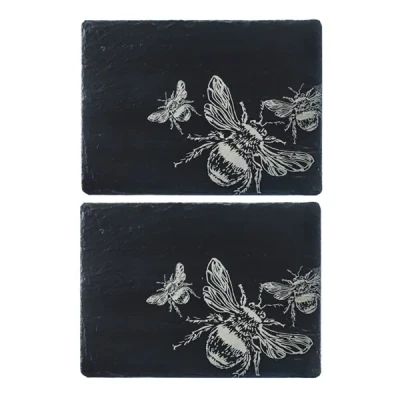 Protect your table from hot temperatures and scratches with the Just Slate Company Set of 2 Bee Slate Place Mats. Handcrafted in Scotland and engraved with a bevy of buzzing bees, each unique and quirky place mat has a food safe coating and a foam backing to protect surfaces.Place mat dimensions: 30cm x 22cm. Wipe clean.Combine the Just Slate Company Set of 2 Bee Slate Place Mats with the matching engraved bee coasters and table runner for a coordinated look.