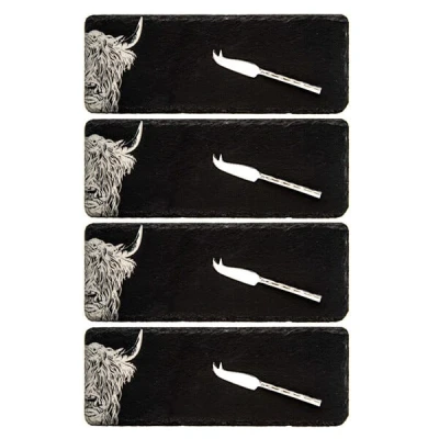 The Just Slate Company Set of 4 Highland Cow Mini Cheese Board & Knife Sets
