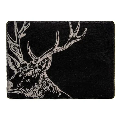 Durable and versatile, this Just Slate Company Stag Slate Cheese Board is just the thing for presenting and serving your favourite cheeses.The delightful slate cheese board has been handcrafted in Scotland and is engraved with a noble and majestic stag. A foam backing protects surfaces.This rectangular slate cheese board would make an ideal present, especially as a housewarming or wedding gift.Slate cheese board dimensions: 35cm x 25cm. Wipe clean.Combine the Just Slate Company Stag Slate Cheese Board with matching place mats and coasters for a coordinated look.