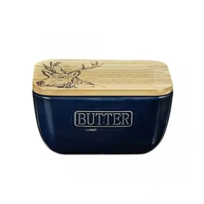 The Just Slate Company Stag Blue Butter Dish adds a touch of sophistication to your table setting while serving butter in style.Crafted from a pleasing combination of ceramic and oak, this butter dish not only looks beautiful but is also functional. Its food-safe design ensures that you can serve your butter with confidence, making it an ideal addition to any dining experience.Engraved and finished in Fife, Scotland.Dimensions: 14.5(L) x 9(W) x 8(H) cm. Weight: 0.61 kg.Cleaning instructions: Ceramic base – dishwasher safe; oak lid and seal – hand wash and dry flat.