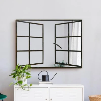 OPENED WINDOWS: Measuring 39" X 29" (100 X 73CM) Our Kirkby range of wall hung mirrors allows you to show your space at its best! The Kirkby offers a crystal-clear reflection from our top quality mirror glass. UPGRADE ANY ROOM: The entire Mirroroutlet range is designed to add that special finishing touch to any space. The Arcus adds style and sophistication in this otherwise busy world to improve lighting and ambience while making the room feel bigger. FUSS-FREE INSTALLATION: The Kirkby is designed to be used as either a wall hung mirror or wall leaning. Fixings are pre fitted to the rear of the mirror for wall hanging. Never use wire or string to hang mirrors! DESIGNED FOR DURABILITY: As the UK's largest Mirror specialist MirrorOutlet have long established relationships with the very best manufacturers who all go through stringent checks and tests to ensure only the very finest mirrors make our ranges. SHOP RISK FREE: At Mirroroutlet your satisfaction is our top priority. If for any reason you don't love your Kirkby Mirror, just let us know. All orders come with the free returns option and the best carriers in the UK, so there's no risk.