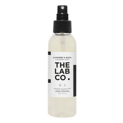 The Lab Co. Cashmere and Wool Mist 150ml is a plant-based, toxin-free spray designed to refresh and preserve cashmere, wool, and blends by neutralizing odors and boosting fragrance without harsh chemicals—ideal for protecting delicate garments between washes and as an alternative to dry cleaning.