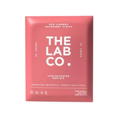 The Lab Co. Laundry Detergent Strips Sheets Eco Ultra Concentrated Non Bio Energising Fragrance Cuban Grapefruit For Hand and Machine Washing. up to 32 Loads