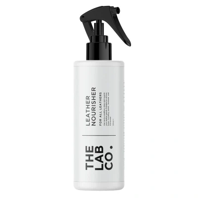 The Lab Co. Leather Nourisher 125ml is a 2-in-1 cleaner and conditioner for all types of leather (except suede), free from harsh chemicals, with added beeswax for shine and water resistance. Made in the UK, it prevents cracking and deeply moisturizes leather items like footwear, accessories, and clothing.