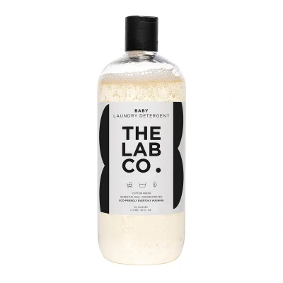 The Lab Co. Soothing Non-Bio Laundry Detergent for Baby&Kids (1l) is a plant-based, vegan, and cruelty-free formula crafted in the UK to gently clean and preserve delicate baby clothes, free from harsh chemicals and toxins, with a calming natural scent of rosemary, patchouli, and sweet orange.