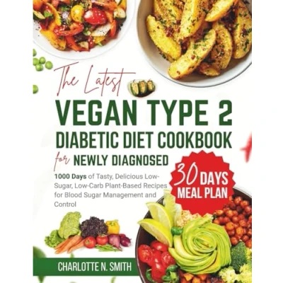 The Latest Vegan Type 2 Diabetic Diet Cookbook for Newly Diagnosed: 1000 Days of Tasty, Delicious, Low Sugar, Carb Plant Based Recipes Blood Sugar Management and Control + 30 Meal Plan