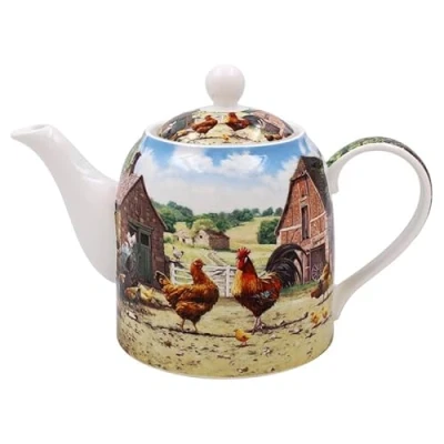 The Leonardo Collection Macneil Studios Cockerel & Hen Tea Pot with Lid British Designed Ceramic for Home Office Serving Hot Drinks