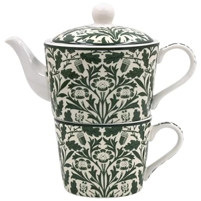 CLASSIC WILLIAM MORRIS ACORN DESIGN: Features a timeless acorn pattern inspired by William Morris style, adding decorative appeal to tea time while blending easily with traditional or modern kitchen tableware. FINE CHINA TEAPOT AND CUP SET: Crafted from quality fine china, this tea for one set offers a smooth glazed finish and durable construction suitable for regular daily tea drinking at home. PRACTICAL TEA FOR ONE CAPACITY: Includes a 400ml teapot and a 250ml cup, providing a convenient serving size for individual tea moments without the need for additional teaware. IDEAL FOR DAILY HOME TEA USE: Designed for everyday enjoyment, this tea set supports relaxed tea breaks, breakfast routines or quiet moments throughout the day. THOUGHTFUL GIFT OPTION FOR TEA LOVERS: A suitable gift for women or men, offering decorative style and practical function, making it ideal for birthdays, celebrations or simple tea related gifting.
