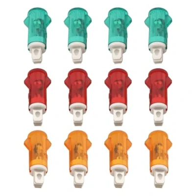 Versatile LED Warning Lights: This MDX-11A set of 12 warning lights comes with 4x red, 4x green, and 4x orange lights, making it ideal for a variety of signaling needs such as emergency alerts, vehicle safety, or decorative lighting. Standard Size & Easy Installation: Size is 10.6x31.1x4.6mm. The compact design fits a wide range of vehicles, with a hole diameter of 10mm for easy installation, making it simple to replace old lights or add new ones to your car, truck, or motorcycle. DC 12V Power Supply: Designed to operate at DC 12V, these warning lights are compatible with most cars, trucks, motorcycles, and more, providing efficient illumination for visibility and safety during the day or night. Construction: Made with plastic and metal, these lights are built to last, withstanding outdoor conditions and ensuring reliable performance for years, even in harsh weather environments. High-Visibility Warning System: Perfect for use as automotive warning or indicator lights, these bright LEDs are highly visible and designed to alert others of your vehicle’s presence, ensuring better safety in low visibility or emergency situations.