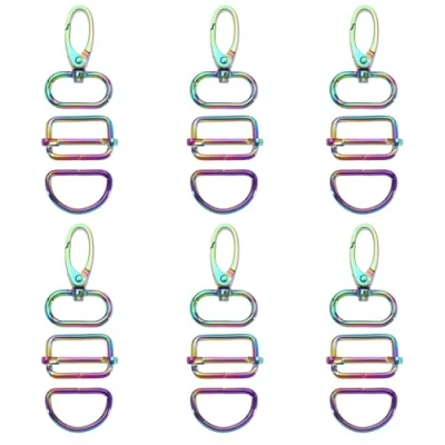 Good product quality: The D-ring buckle is made of sturdy and high-quality metal material, with a smooth surface and good color. The diameter of the buckle is relatively thick, making it less prone to breakage or deformation. 6 sets of 18 pieces: This set comes with 6 rotating hooks, 6 D-rings, and 6 sliding buckles, totaling 15 pieces of rainbow wallet hardware, enough to meet your daily replacement needs. The product is easy to use: the rotating hook can be opened, can rotate 360 °, and can rebound on its own. Multi scene use:Suitable for sewing, DIY handmade, clothing, scrapbooks, bags, wallets, handbags, jackets, backpacks, toys,etc.