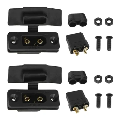 Made of high quality plastic and metal, lightweight and durable. Applicable current rated 30A instantaneous 60A. Suitable for model aircraft, unmanned aerial vehicle, energy storage equipment, lithium battery, intelligent transportation, electric vehicle, small household appliances. High current XT90E-M installation plug + XT90H plug with rubber cap, screws for Lipo battery XT90 2 pin reverse polarity safe suitable for DIY, model making, copter, motorcycle, e-bicycle, e-scooter, car, caravan. Package Included 2x XT90E-M + 2x XT90H-F + 4x Screw Set + 2x Cover.