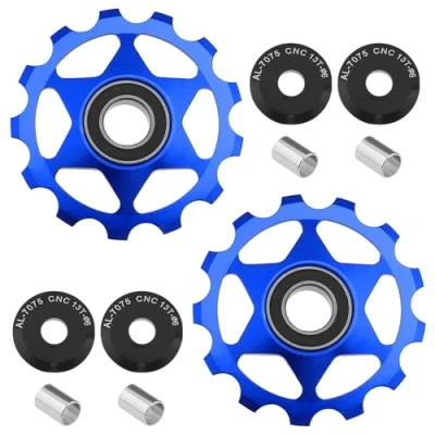 Improved Pedaling Speed: The ceramic inner bearing reduces friction, leading to much smoother transmission and enhanced pedal performance. Ultralight and Durable: Constructed with CNC aluminum alloy, these jockey wheels offer maximum strength and durability while being ultralight. Wide Compatibility: Suitable for mountain bikes or road bikes and compatible with various rear speed derailleurs, compatible with SHIMANO and compatible with SRAM 8, 9, 10, 11, and 12-speed derailleurs. Easy Installation: Simple installation with an allen key, using the included accessory for compatibility with 4mm, 5mm, and 6mm derailleurs. Anodized surface prevents rust and corrosion. Set of 2 Jockey Wheels: The package includes a set of 2 13T jockey wheels, for component replacement or bike upgrade.