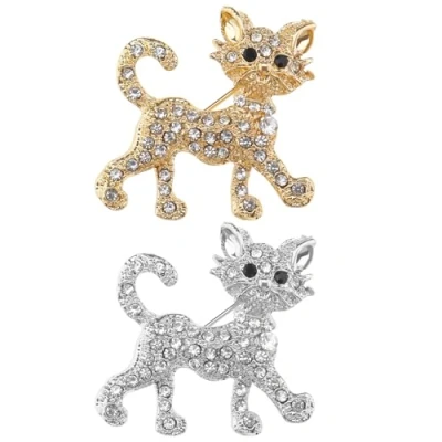 the Lord of Tools 2pcs Diamond Embedded Cat Brooch Crystal Rhinestone Alloy Shaped Clothes Gold Silver Pin