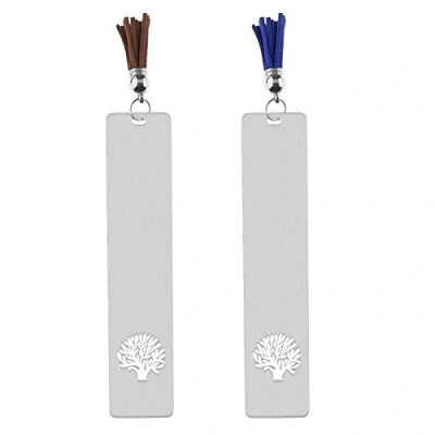 the Lord of Tools 2Pcs Metal Bookmark Tree Life Pattern with Blue Brown Tassel Stainless Steel Decorative Bookmarks for Teachers Students Men Women Silver
