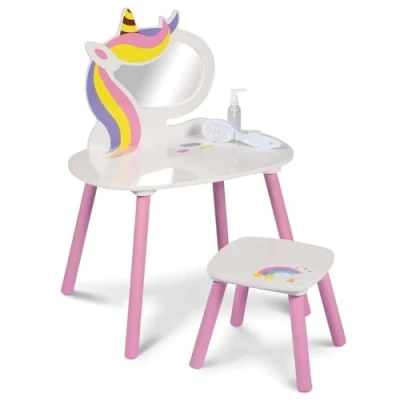 The Magic Toy Shop Unicorn Themed Table Set Children Vanity Enchanting Dressing with Mirror and Stool Transform Kids Bedroom