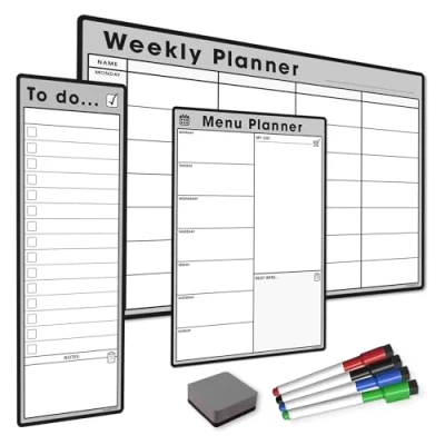 The Magnet Shop #1 Magnetic Whiteboard Planner Pack/Custom Dry Erase Set - Weekly Planner, My List, Monthly Calendar, 4 Dry Wipe Marker Pens, Eraser (Grey, Bundle 3)