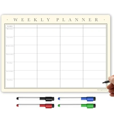 The Magnet Shop A4 Magnetic Weekly Planner And Organiser – Fully Customisable Whiteboard For Family Or Business Tasks And Meal Planning With 4 Free Magnetic Dry Wipe Pen Classic Cream, A4 Product Type: Writing Board Brand: The Magnet Shop Color: Classic Cream Size: A4