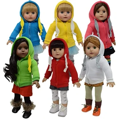 The New York Doll Collection Dolls Solid Coloured Set of 6 Hoodie T Shirts For Fashion Girl Sweatshirts Fits All 18 Inch/46cm Clothing Accessories