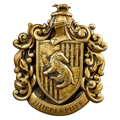 Inspired by the Harry Potter film series, this finely crafted Hufflepuff Wall Crest is cast in resin and hand-painted in a fine gold colour with darker areas in the relief for an authentic vintage finish. The crest features the Hufflepuff house mascot, the badger, and the house name underneath. This Hufflepuff Crest Wall Art measures approx. 8in (20cm) in width & 11in (28cm) in length. This crest has two hooks and a flat back surface for wall mounted display to create a unique feature and talking point for any room. Comes in a Hufflepuff themed cardboard picture box perfect for gifting. The Noble Collection has gained an international reputation for products with exquisite design and fine craftsmanship; every Harry Potter product we produce is officially licensed and is based on the props and designs used in the Wizarding World film series. Every one of our Wizarding World products makes the perfect gift for the Harry Potter fan in your life. Become a wizard with our Noble Collection wands, show your house pride with our badge sets, or simply cuddle up with your very own plush toy. In the unlikely event you're not completely happy with your Harry Potter merchandise we will provide you with a full refund in accordance with Amazon terms.