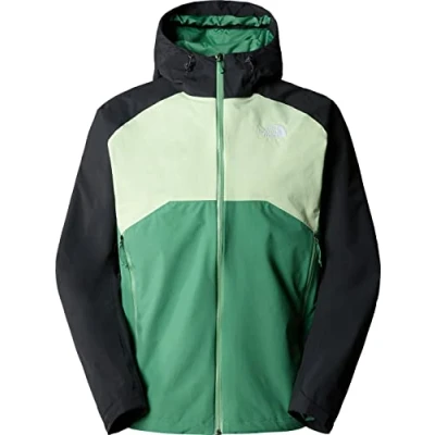 THE NORTH FACE Men's Stratos Jacket, Dpgrssgrn/Lmcrm/Asphltgry, M