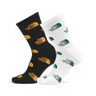 The North Face Unisex Everyday Crew Logo 2P Socks, Tnf Black/Summit Gold/T, L