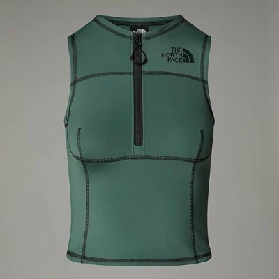 Tank top with raised rubber print logo Flat fold seams VISLON zipper with drawstring Raised rubber print logo on the back
