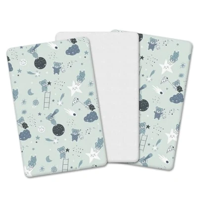🌟 The Perfect Trio | A premium pack of 3 crib fitted sheets, crafted with high-quality materials to ensure utmost comfort and softness. This bedding set is designed to provide your child with a pleasant and restful sleep experience. It includes 2 fitted sheets and 1 waterproof mattress protector, catering to the essential needs of your little one. It is also Next To Me compatible, as it fits snugly on mattresses for cribs or bassinets measuring 83 x 50 + 13 cm. 💯 100% Pure Cotton Crib Fitted Sheets | The fitted sheets are carefully manufactured from 100% pure cotton, ensuring softness and comfort for your child's utmost enjoyment and rest. Unlike synthetic fibers, these sheets offer a superior tactile experience, providing a gentler touch and a more pleasant feel. Rest assured, this product is completely free from polyester, nylon, polypropylene, or bamboo fibers, guaranteeing a purely cotton composition. 💧 Waterproof Mattress Protector | The terry fabric of this waterproof mattress protector is made from a cozy and highly breathable polycotton blend ensuring a comfortable and sleep. Equipped with a waterproof TPU membrane, it provides reliable defense against liquids, spills, and those inevitable nighttime accidents. The flexible skirt and elastic design ensures a perfect fit, adapting effortlessly to your mattress. Rest easy knowing your mattress is fully safeguarded, while you enjoy a peaceful night's rest. 🍃 Made in Green | OEKO-TEX Standard 100 (Textiles Tested for harmful substances and insuring Customer Confidence and High Product Safety) 🚿 Washing Instructions | This product is machine washable and it is recommended to wash the product before first use. Use a water temperature of 40°C and a suitable laundry detergent. Avoid using bleach, as it may compromise the quality and softness of the item. For drying, tumble dry at a low temperature setting. If desired, you can also iron the product.