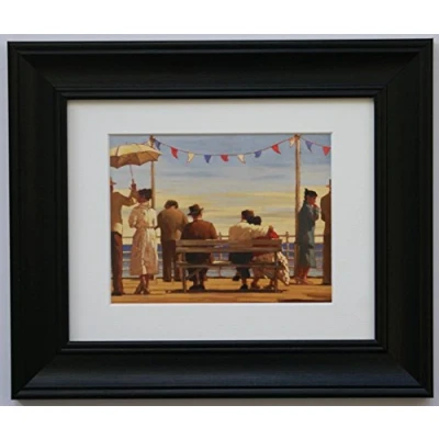 Framed print titled 'The Pier' by artist: Jack Vettriano Chunky high quality frame & high quality acid free bevel mount. Overall size including frame: 13" x 11" - 33cm x 28cm Actual image size: 7" x 5" - 18cm x 13cm Arrives ready to hang on the wall.