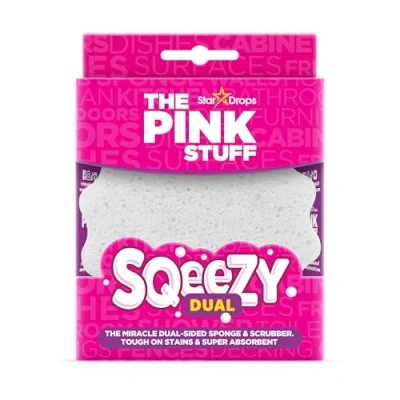 JoybuyThe Star Drops The Pink Stuff Sqeezy Dual Miracle Dual-Sided Sponge&Scrubber is a versatile, temperature-responsive cleaning tool featuring a soft sponge for gentle cleaning and a scrubby side for tough messes, safely tackling grease and stains on multiple surfaces without scratching. Dishwasher safe and infused with The Pink Stuff formula.
