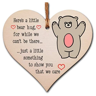 The Plum Penguin Handmade Wooden Hanging Heart Plaque Gift bear hug miss you cute rainbow family friends grandparents